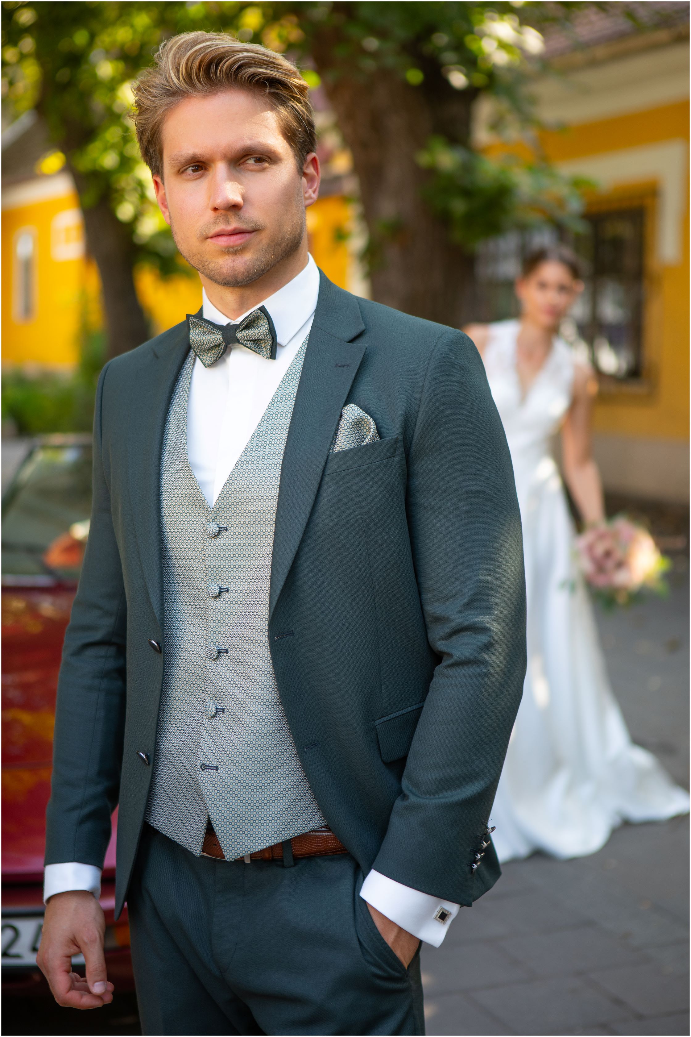 Wenn du ein Brautkleid bei uns gekauft hast, erhält dein Bräutigam 10% Rabatt auf sein Hochzeitsoutfit !