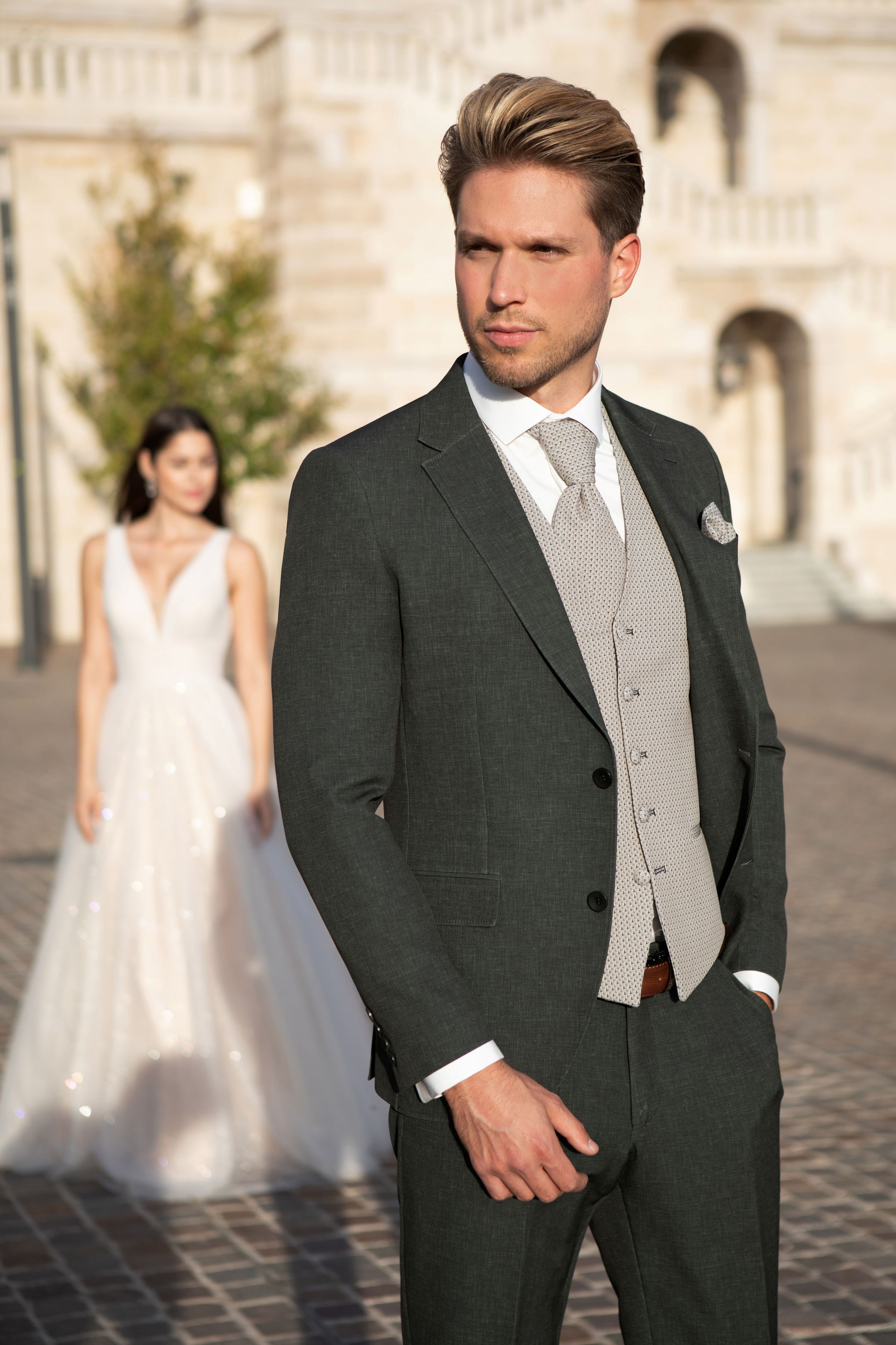 Wenn du ein Brautkleid bei uns gekauft hast, erhält dein Bräutigam 10% Rabatt auf sein Hochzeitsoutfit !